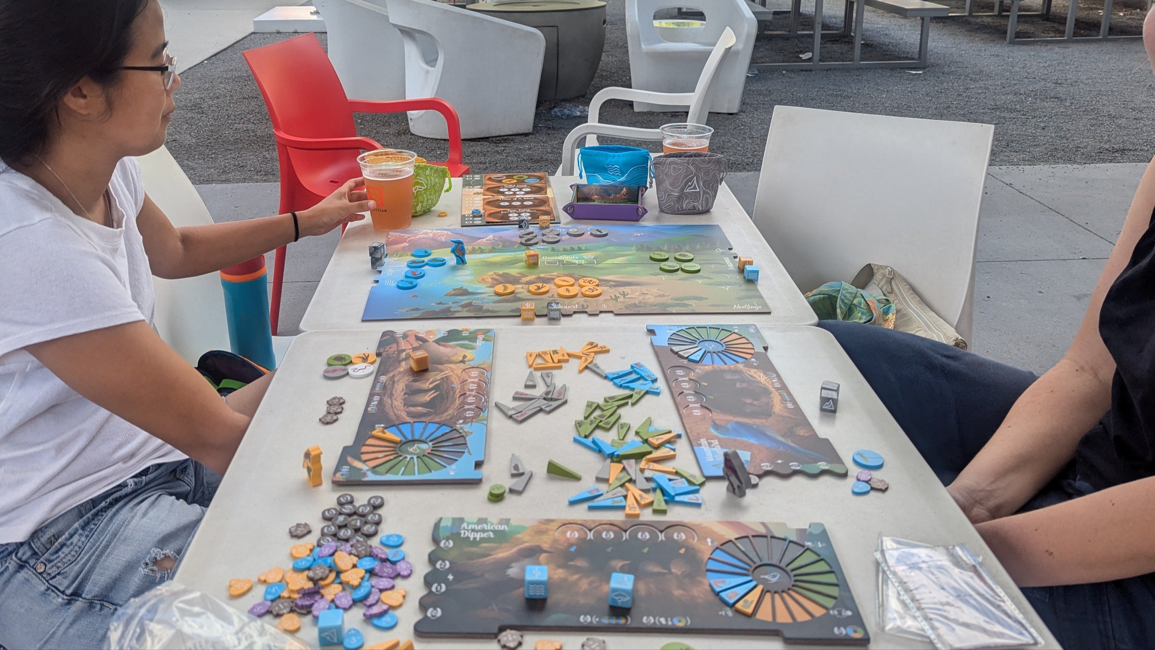 Harmonies is a cozy game tile placing game all about balancing you ecosystem between having complimenting biomes and providing habitats for your animals!