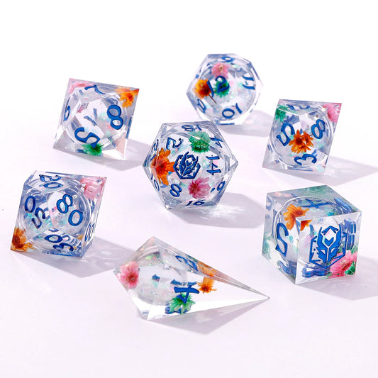 Captured Magic Liquid Core Dice Set - Mana Blossom, Hand Sanded Sharp Edge Resin