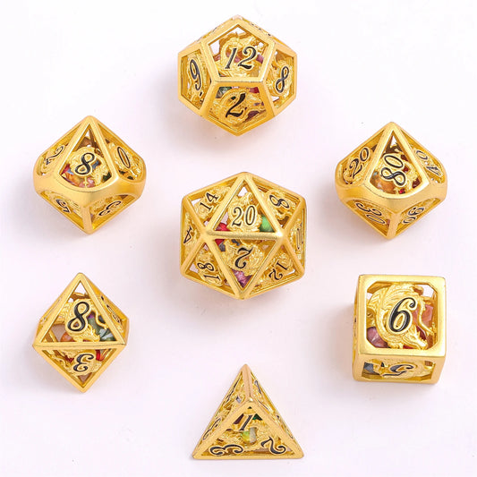 Dragon Dice Set Filled With Gems - Gold, Hollow Metal