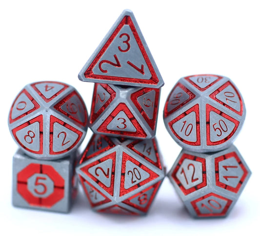 Mystery Set of 7 Matching Ornate Solid Metal Polyhedral RPG Dice