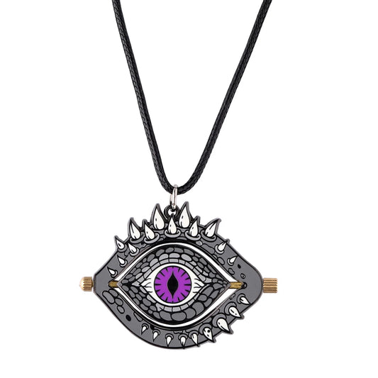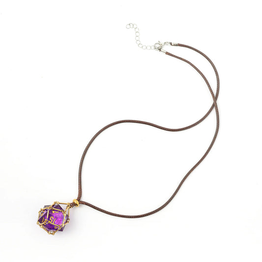 Dragon's Eye D20 Necklace - Gunmetal w/ Purple Gems