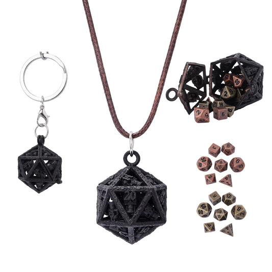 Grimskull's D20 Necklace Locket Gift Set - Ancient Silver