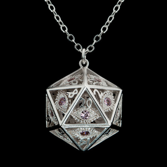 Fleur de Lis: Gilded Magenta Hollow Metal RPG Dice Set