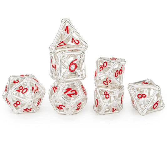 Reaper's Confine Silver Red Hollow Metal RPG Dice Set