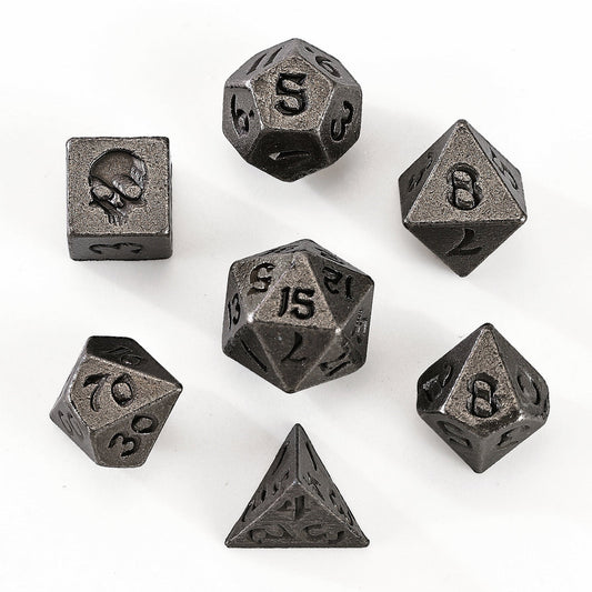 Hymgho Solid Metal Druid RPG Dice Set - Pale Cyan w/ Black