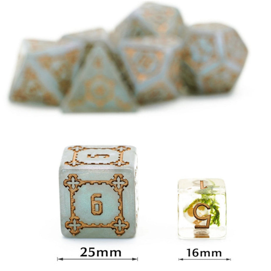 25mm Huge Castle RPG Dice Set - Gray w/ Gold Resin