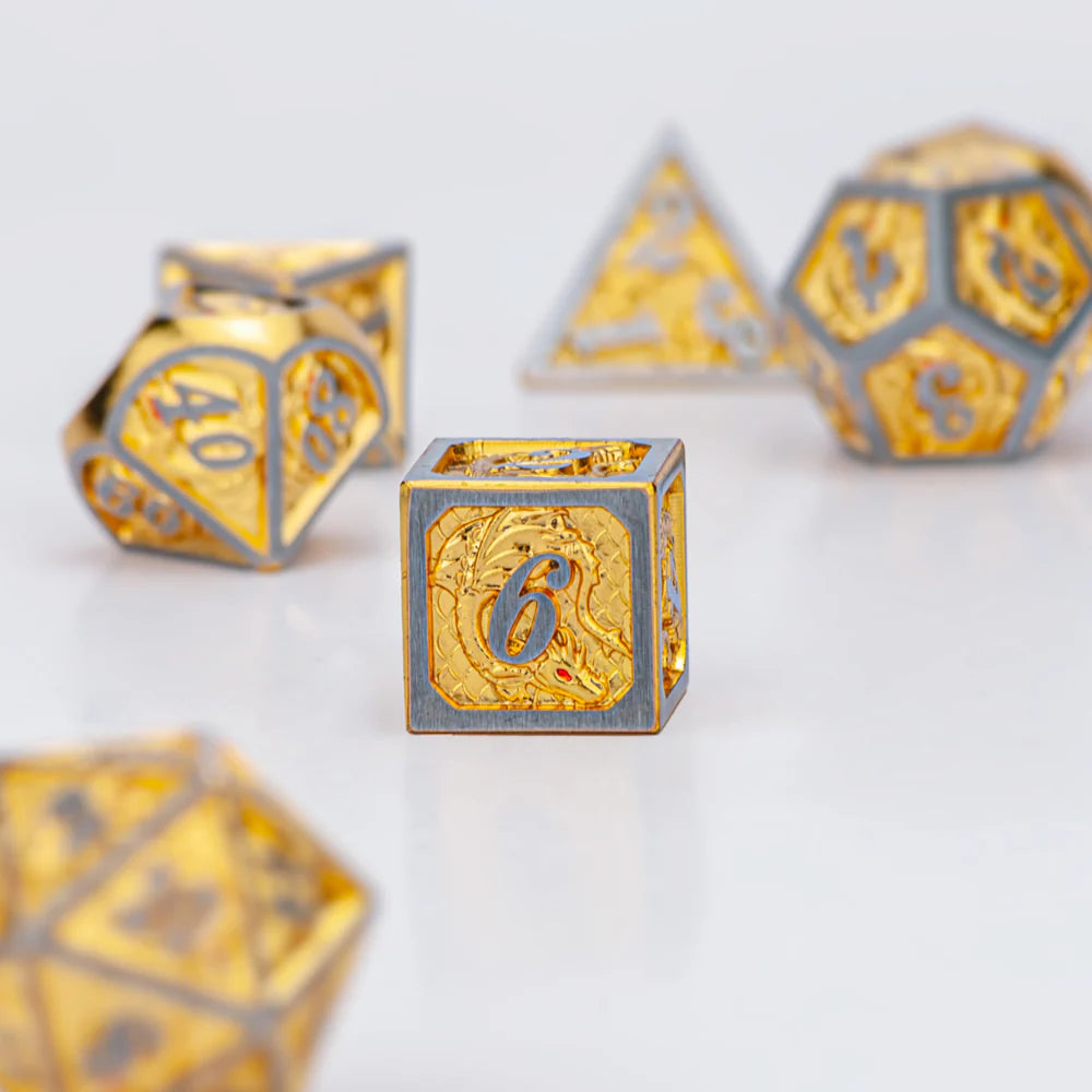 Dragon Dice Set - Brushed Gold, Solid Metal