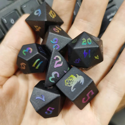 Engraved Prism Obsidian - Dice Set with Deluxe Case