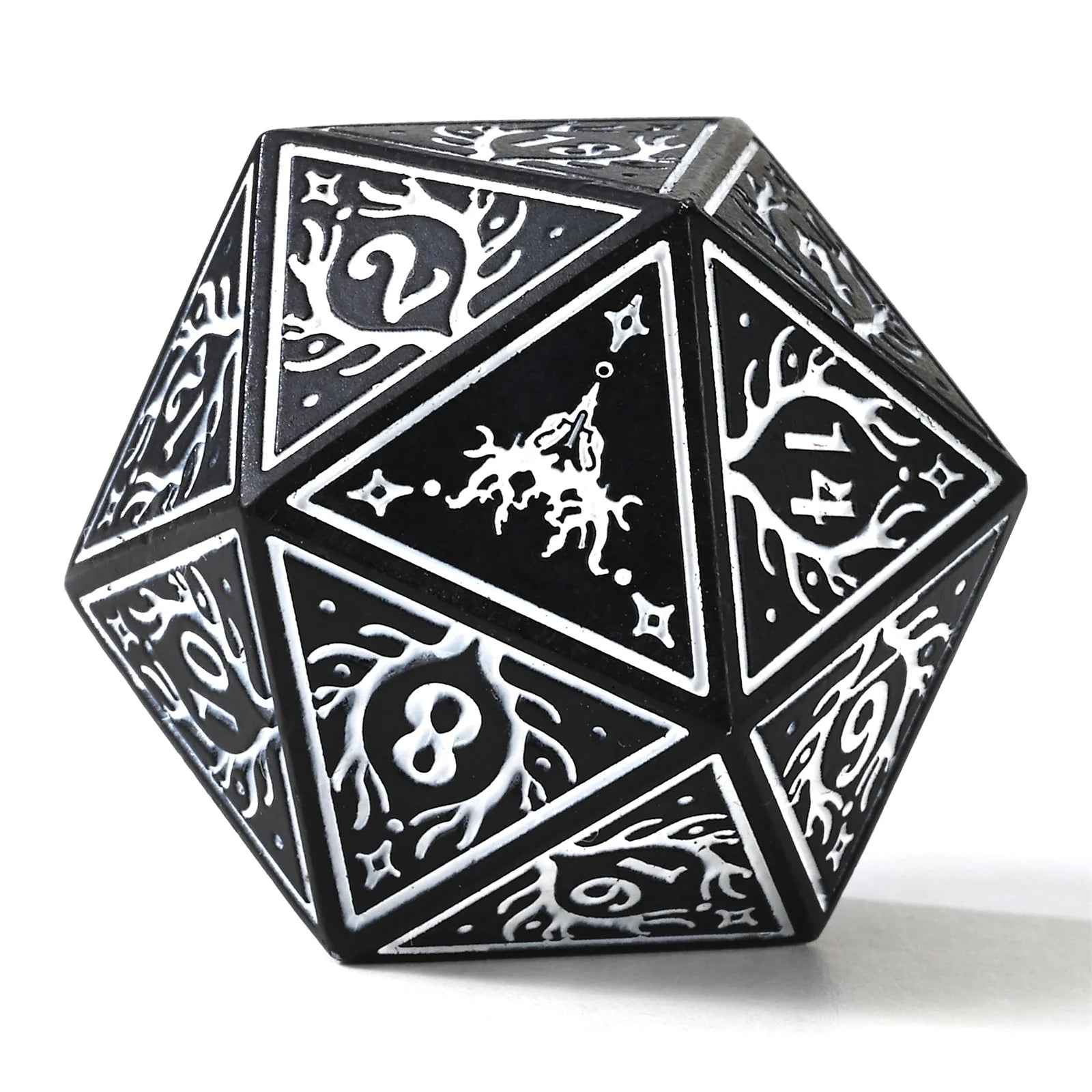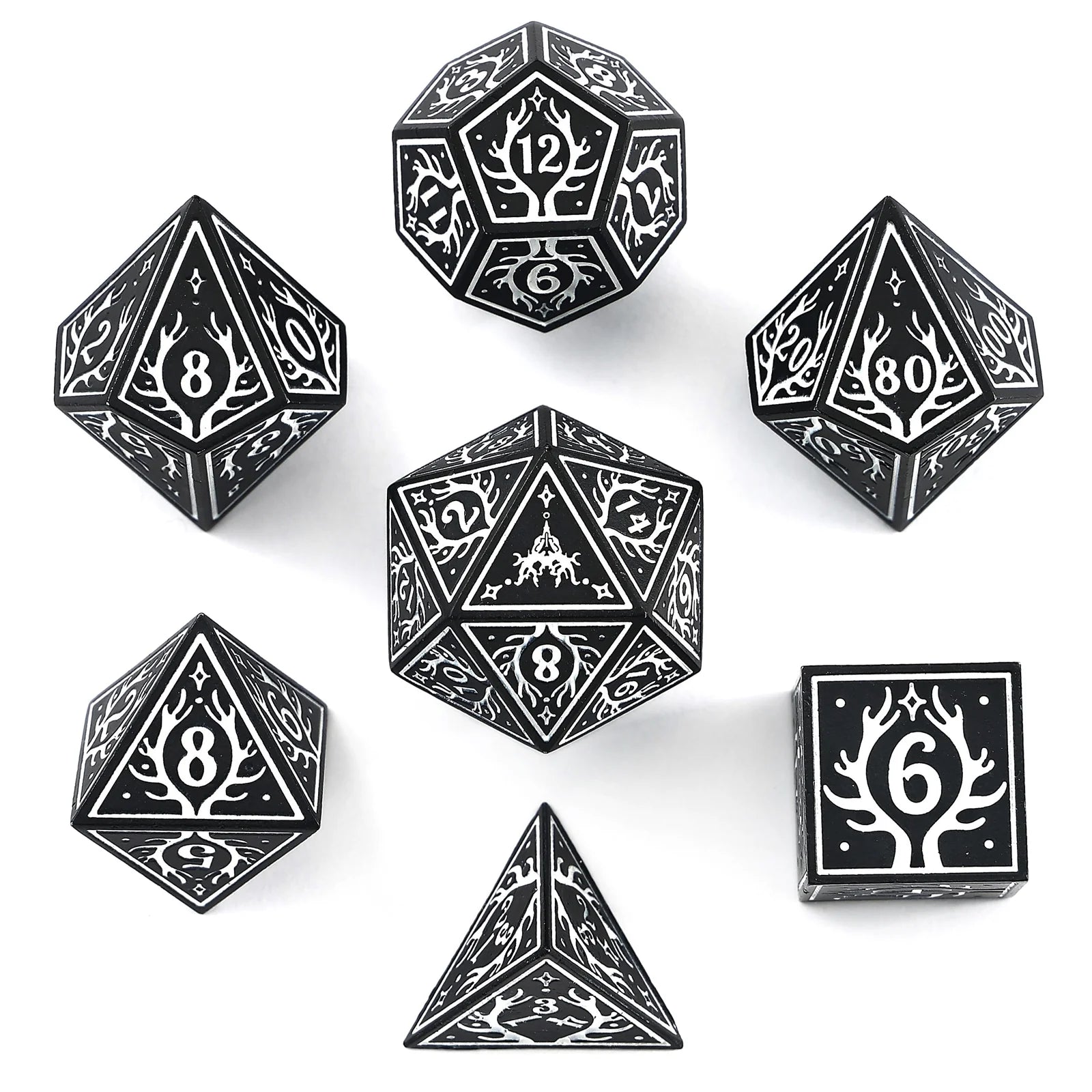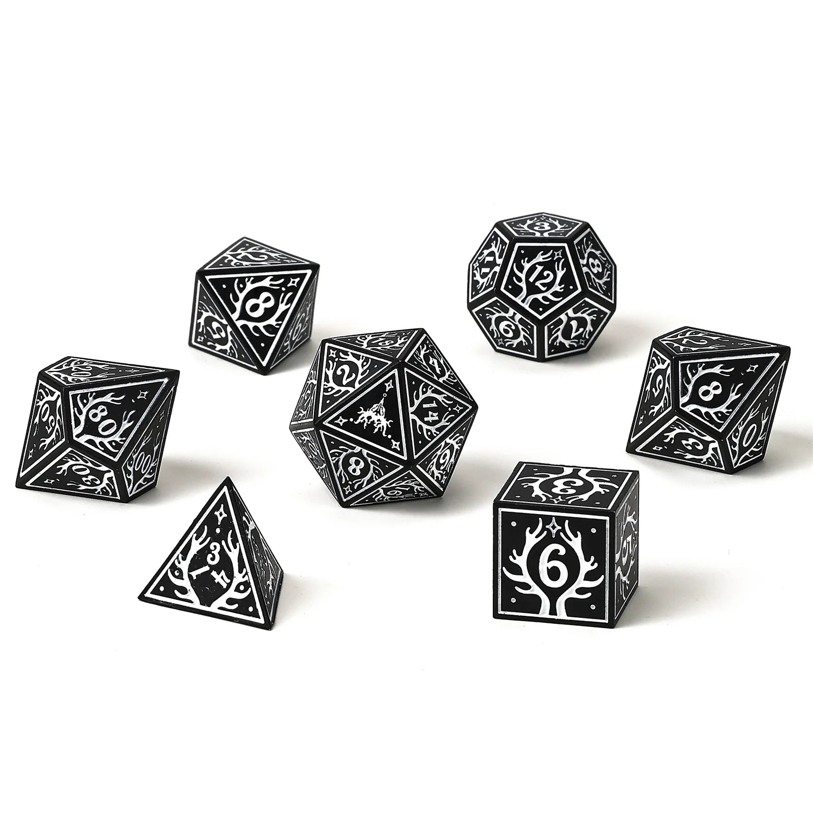 Hymgho Solid Metal Druid RPG Dice Set - Black w/White