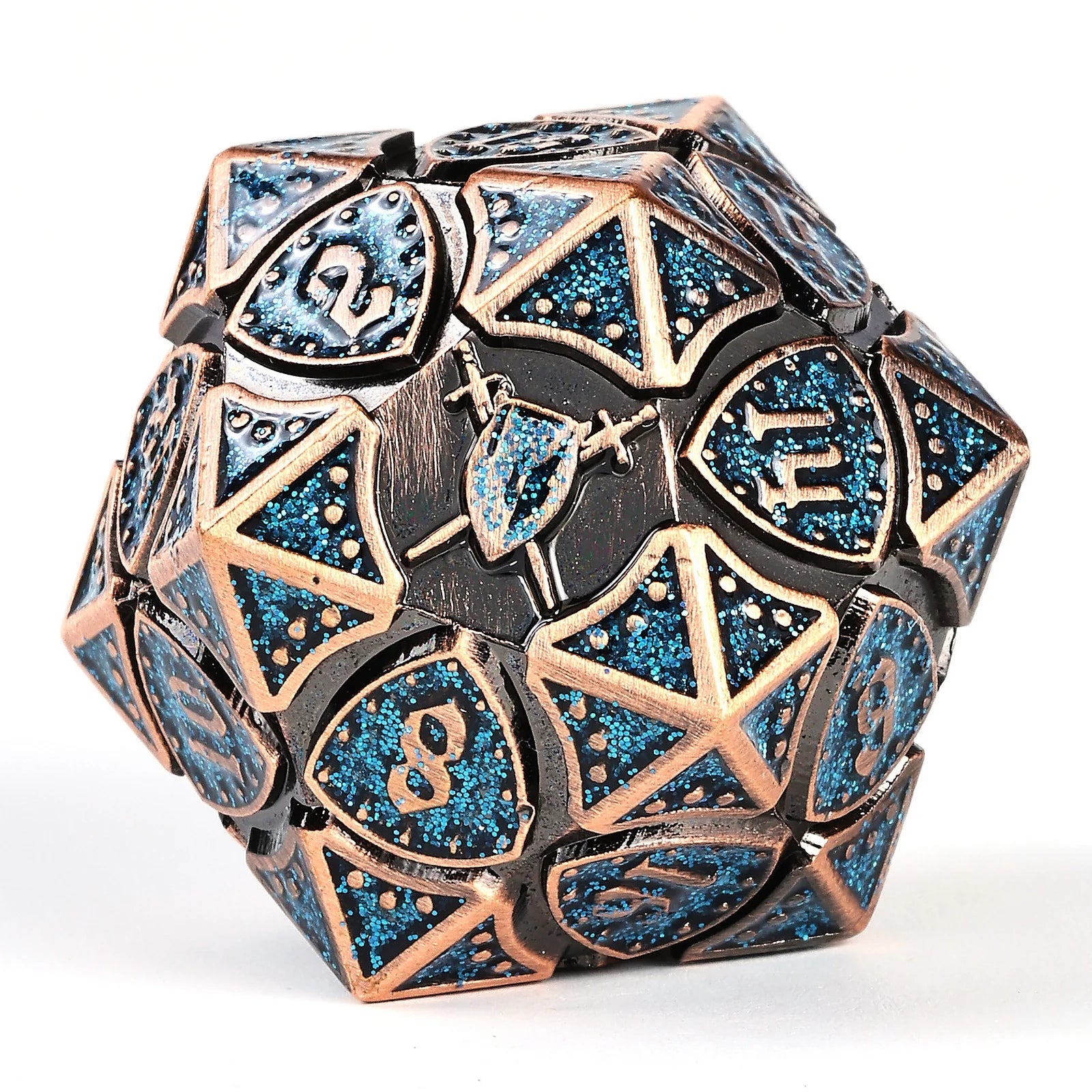 Hymgho Solid metal Fighter RPG Dice Set - Copper w/Blue Glitter