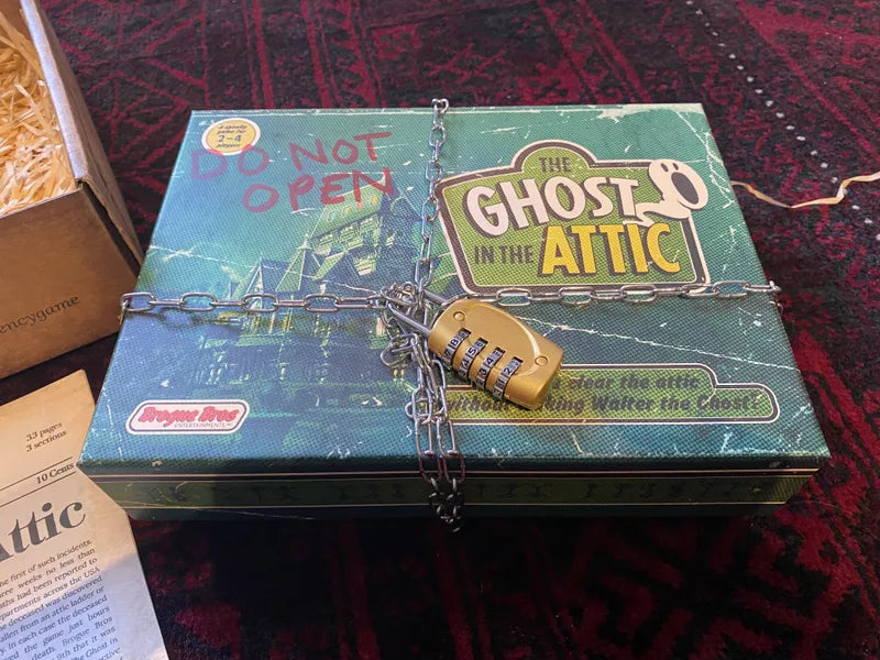 Similar to an escape room game, this mystery presents you with a replica board game, chained up with a metal combination lock, and leaves you to work out how to open it and find and solve the mystery.
