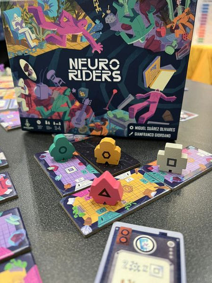 Neuroriders is a tile-laying game where the players will be traveling around the brain looking for the right amount of data they can take care of. To achieve this goal, they have to connect doors and avoid getting caught by crystalized areas.